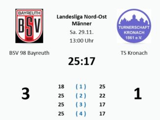 Seriös haben die Landesliga-Volleyballer des BSV 98 Bayreuth die Aufgabe gegen die TS Kronach gelöst. Nach Anlaufschwierigkeiten holten sie in eigener Halle drei Punkte (18:25, […]